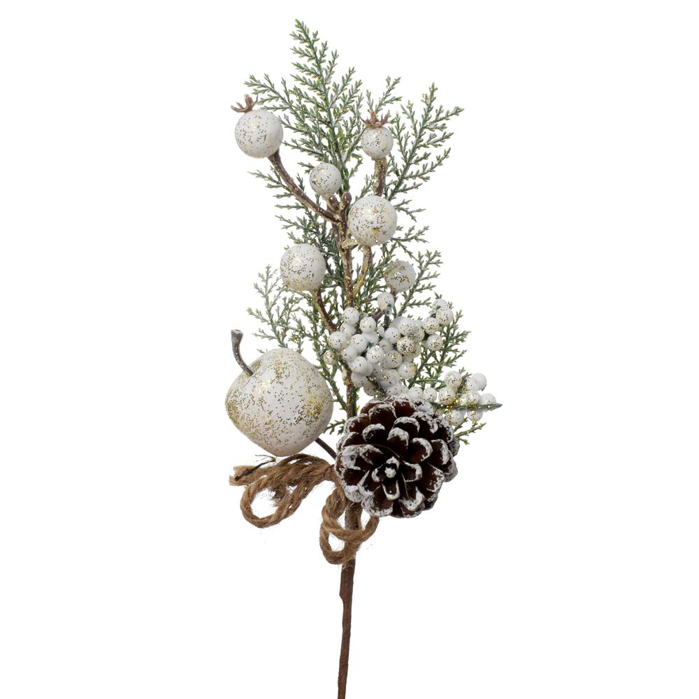 Umelý zápich je ideálny na vianočné dekorácie. Obsahuje tuju, šišku, biele jablko a šípky, všetko doplnené zlatým gliterom. Jeho výška je 27 cm, čo ho robí skvelým doplnkom do akéhokoľvek aranžmánu. Perfektne sa hodí na ozdobenie vianočných vencov alebo ako súčasť stolových dekorácií.