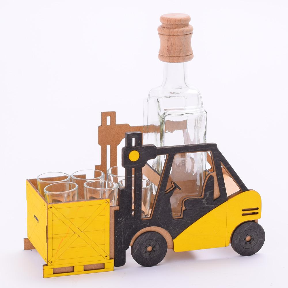 743 VOZÍK VYSOKOZ./POHÁRE DREVO+SKLO V27x10x26cm