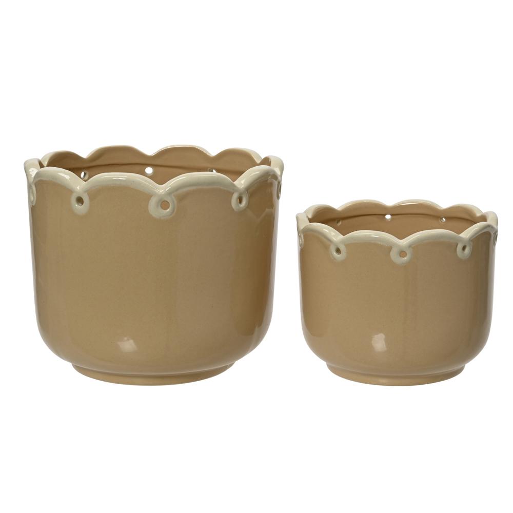Kameninový kvetináč krém S/2