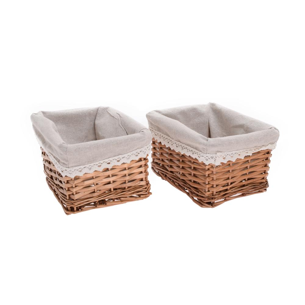 Sada obdélníkových košíků s látkovým vnitřkem v hnědé barvě.
