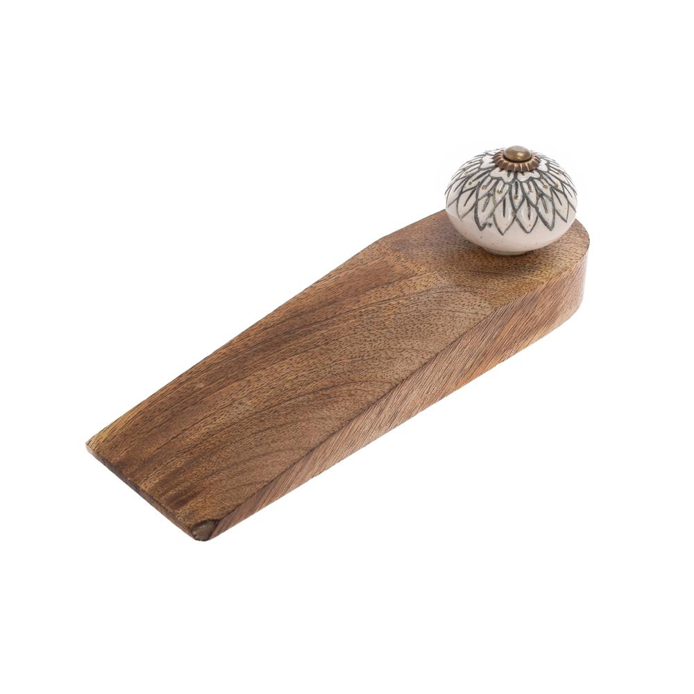 Drevená retro zarážka dverí s dekoratívnym vrchom.