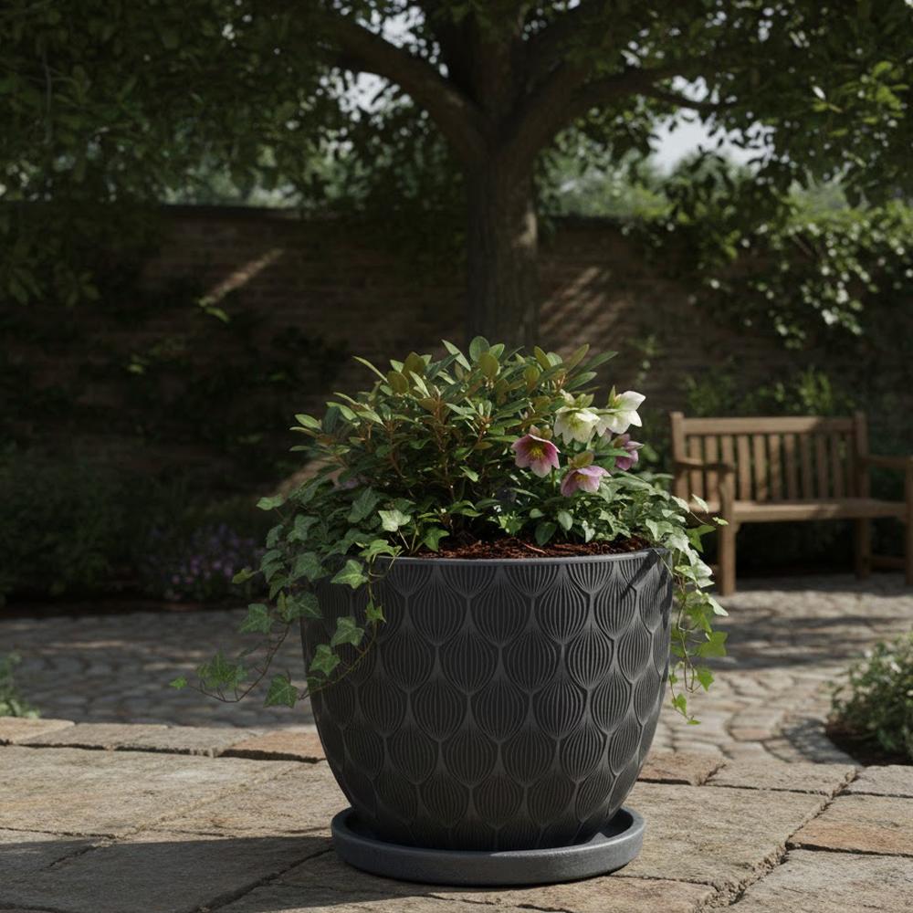 J116 KVETINÁČ + MISKA OKRÚHLY JILL ČIERNA 44H36CM XL
