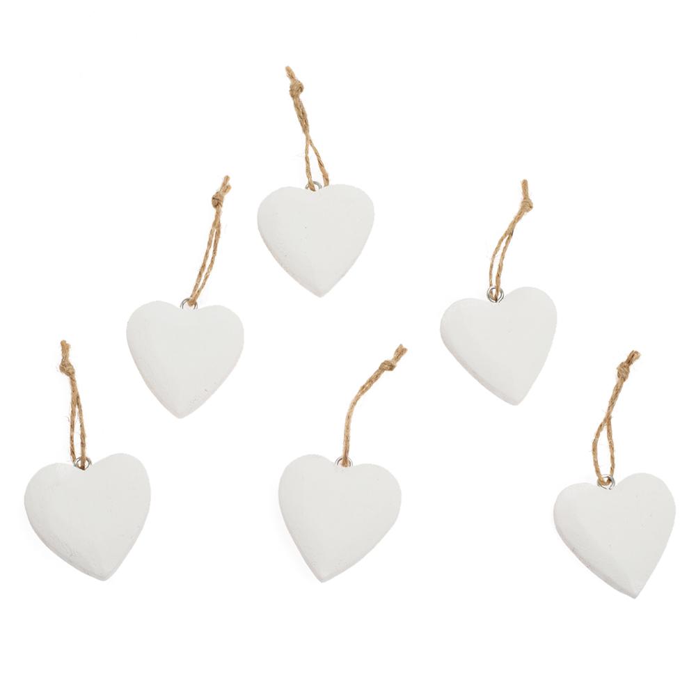 Biele drevené srdiečka na zavesenie, sada 6 kusov.