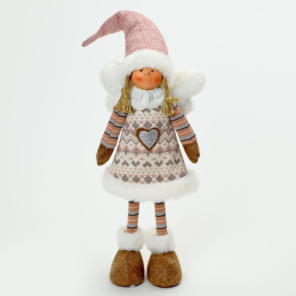 Textilný anjel s výškou 47 cm je ideálnou dekoráciou na Vianoce. Je oblečený v roztomilých šatách s motívom a má ružovú čiapku. Jeho mäkké krídla a srdiečko na šatách dodávajú na pôvabe. Tento anjel je skvelým doplnkom na vianočný stôl alebo do obývačky.