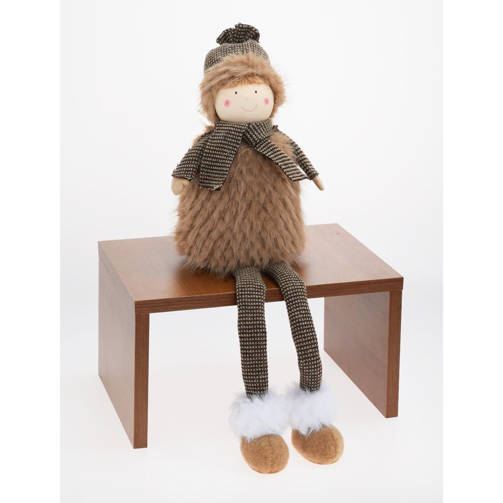 Chlapec sediaci v hnedo-béžových farbách je ideálnou dekoráciou na Vianoce. Je vyrobený z kvalitného textilu a má roztomilý vzhľad. Jeho dlhé nohy a príjemný výraz dodávajú interiéru útulnosť. Perfektne sa hodí na ozdobenie vášho domova počas sviatkov.