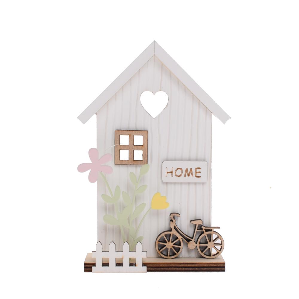 Domček z dreva je krásny dekoratívny prvok pre váš domov. S rozmermi 10,5x3,8x16 cm je ideálny na poličku alebo stôl. Obsahuje detail bicykla a kvetinové motívy, ktoré dodávajú útulnosť. Tento produkt je skvelým darčekom alebo doplnkom do interiéru.