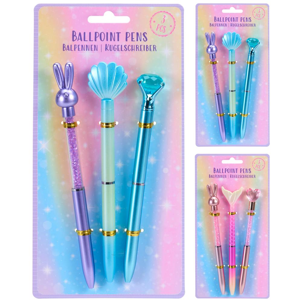 obsahuje tri rôzne dizajny, ktoré sú ideálne pre každodenné písanie. Každé pero má jedinečný tvar, vrátane motívu králika a mušle.