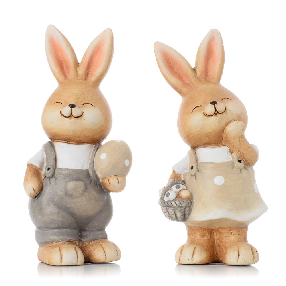 ZAJAČIKY HNEDÉ V ŠATÁCH S VAJÍČKOM A KOŠÍKOM MIX/2 KERAMIKA 7,5*6,8*17CM