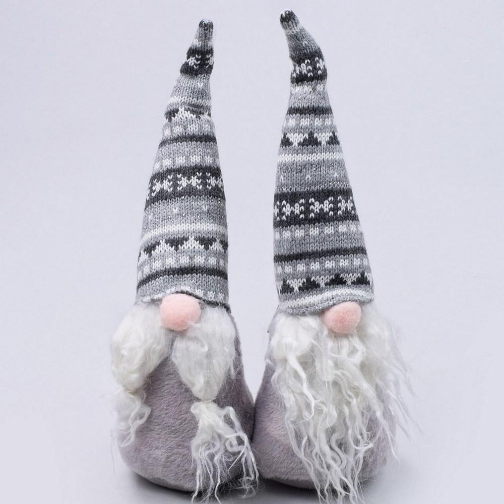 Vianočné dekorácie v podobe Mikulášov s dlhými šedými čiapkami. Tieto postavičky sú vyrobené z kvalitných materiálov a majú jemné detaily, ako sú biele brady a nosy. Ideálne na ozdobenie vášho domova počas vianočných sviatkov. Pridajte do svojho interiéru štipku vianočnej atmosféry s týmito roztomilými dekoráciami.
