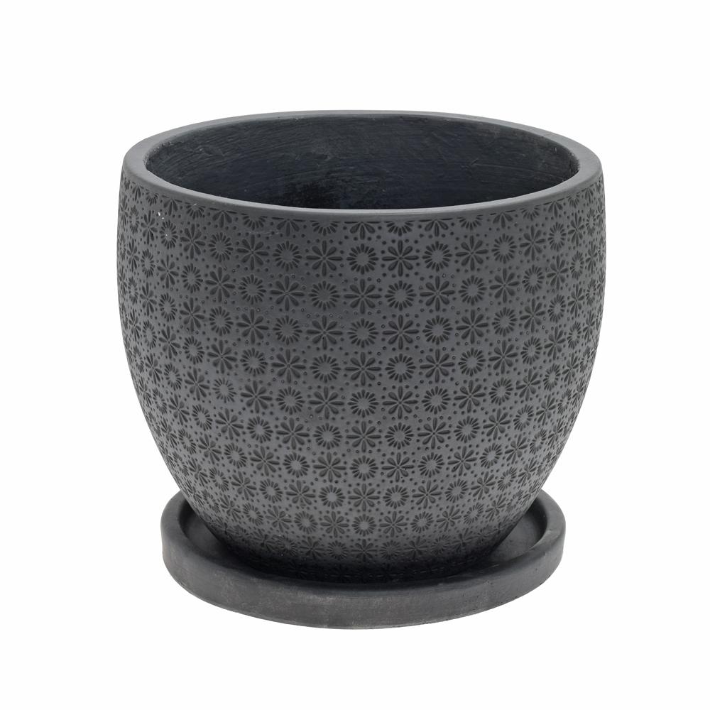 J135 KVETINÁČ + MISKA PAIGE ČIERNA 44x36CM L