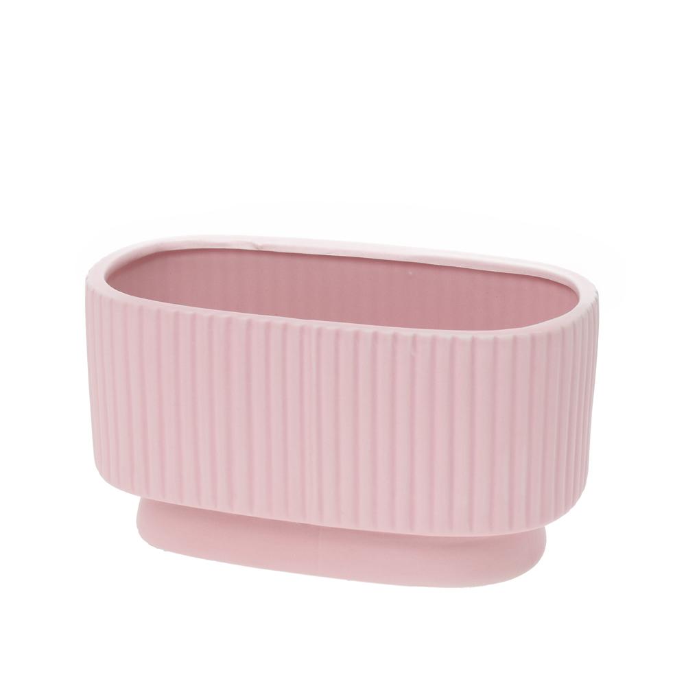 Elegantný dizajn: Tento pruhovaný oválny obal je vyrobený z kvalitnej keramiky a dodá vášmu interiéru štýlový vzhľad. Praktické rozmery: S rozmermi 18x10,5x10 cm je ideálny na kvety alebo dekorácie. Ružová farba: Jemná ružová farba oživí každý priestor. Univerzálne použitie: Vhodný do obývačky, spálne alebo kancelárie.