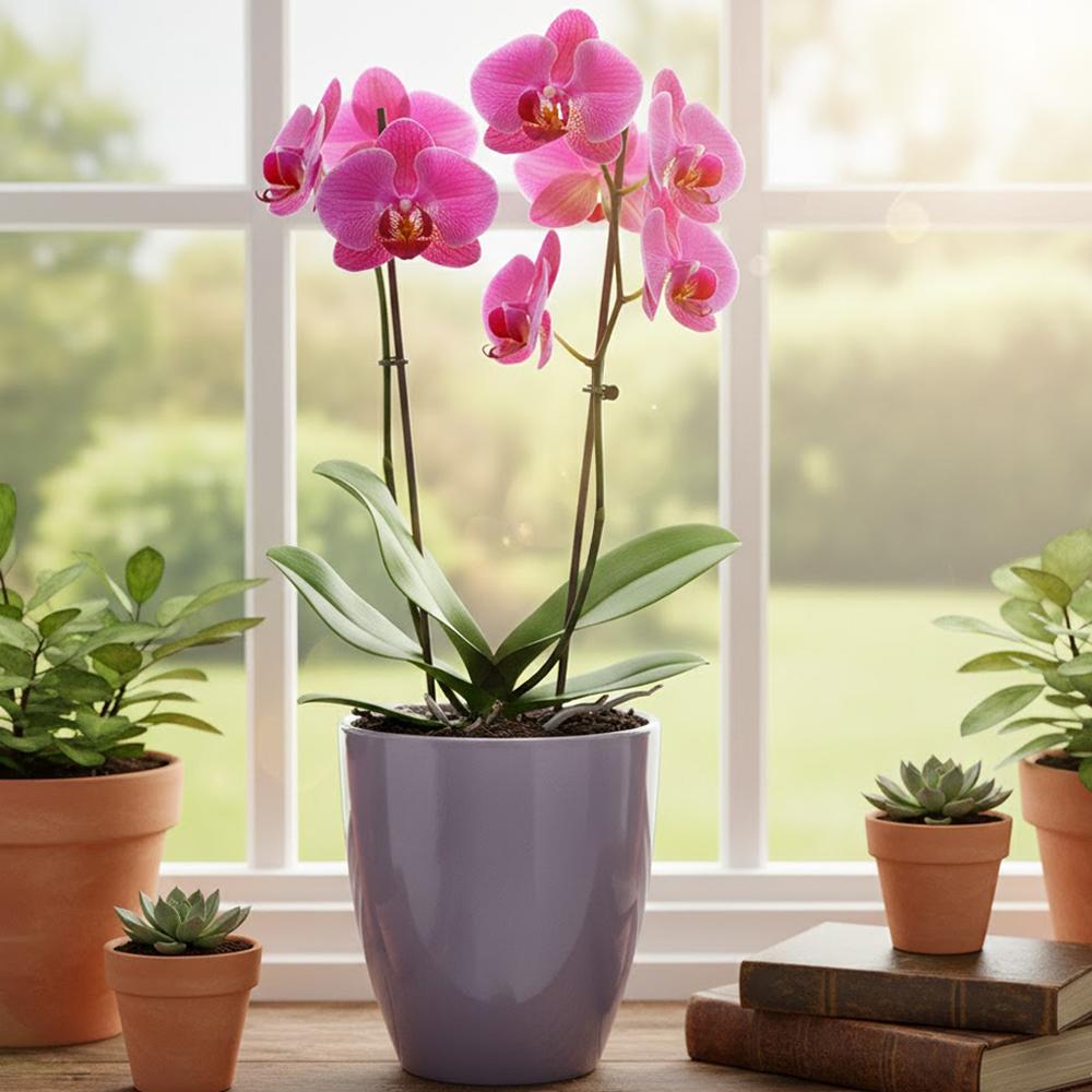 na kvety je ideálny pre orchidey a iné rastliny. Vyrobený z kvalitnej keramiky, ponúka moderný dizajn a elegantný vzhľad. Jeho jemná fialová farba dodáva každému interiéru nádych štýlu. Tento obal je skvelou voľbou pre tých, ktorí chcú ozdobiť svoj domov rastlinami.