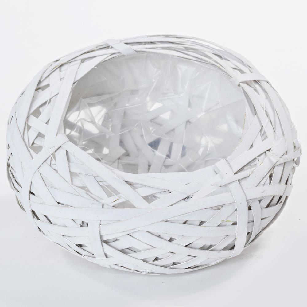 Biely prútený obal je ideálny na dekoráciu a uskladnenie rôznych predmetov. S priemerom 24 cm a hĺbkou 8 cm je dostatočne priestranný. Plastové vnútro zabezpečuje ochranu pred vlhkosťou. Tento obal je skvelým doplnkom do každého interiéru.