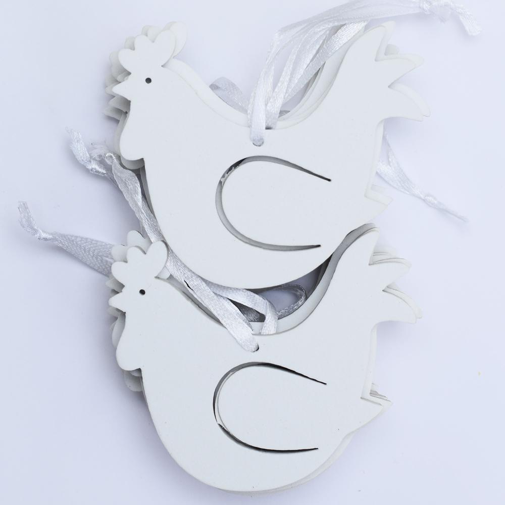 Biele EVA výrezy sliepok na zavesenie, balenie po 12 kusov.