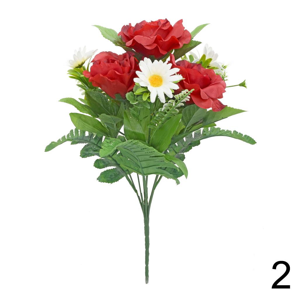 Kytica umelých kvetov obsahuje kombináciu ruží, margarét a zelene. S výškou 40 cm je ideálna na dekoráciu interiéru alebo exteriéru. Kvetinová kompozícia je vyrobená z kvalitných materiálov, ktoré zaručujú dlhú životnosť. Perfektne sa hodí do vázy alebo ako súčasť aranžmánov.