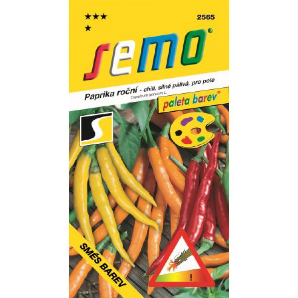 kolekce PALETA BAREV – směs raných chili papriček určených pro pěstování na poli, ve fóliovnících i sklenících. Směs poskytuje žluté, oranžové a červené, středně dlouhé, tenké plody. Rostliny vyžadují teplo a dostatečnou zásobu živin. Výborně reagují na kapkovou závlahu. Vhodné i pro pěstování v nádobách. Osivo jednotlivých odrůd je v sáčku barevně odlišeno mořením.