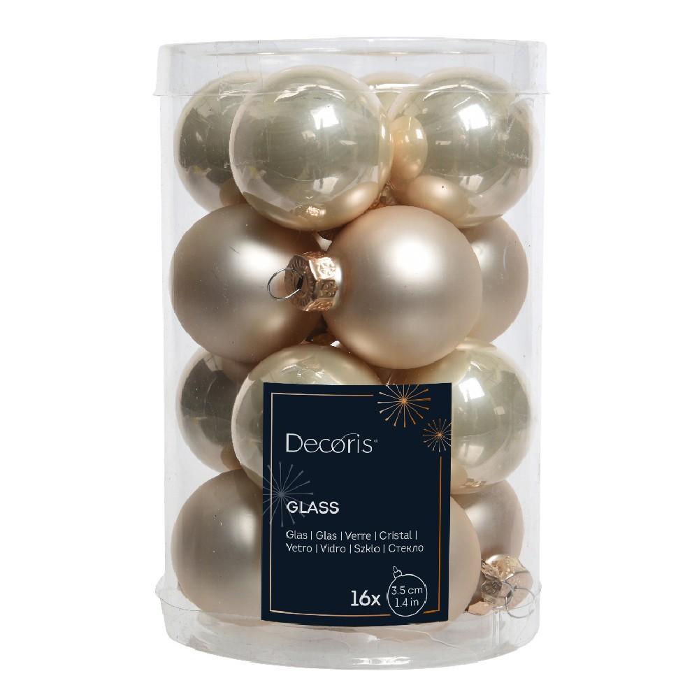 Sklenené vianočné gule v krémovej farbe, balenie 16 kusov.