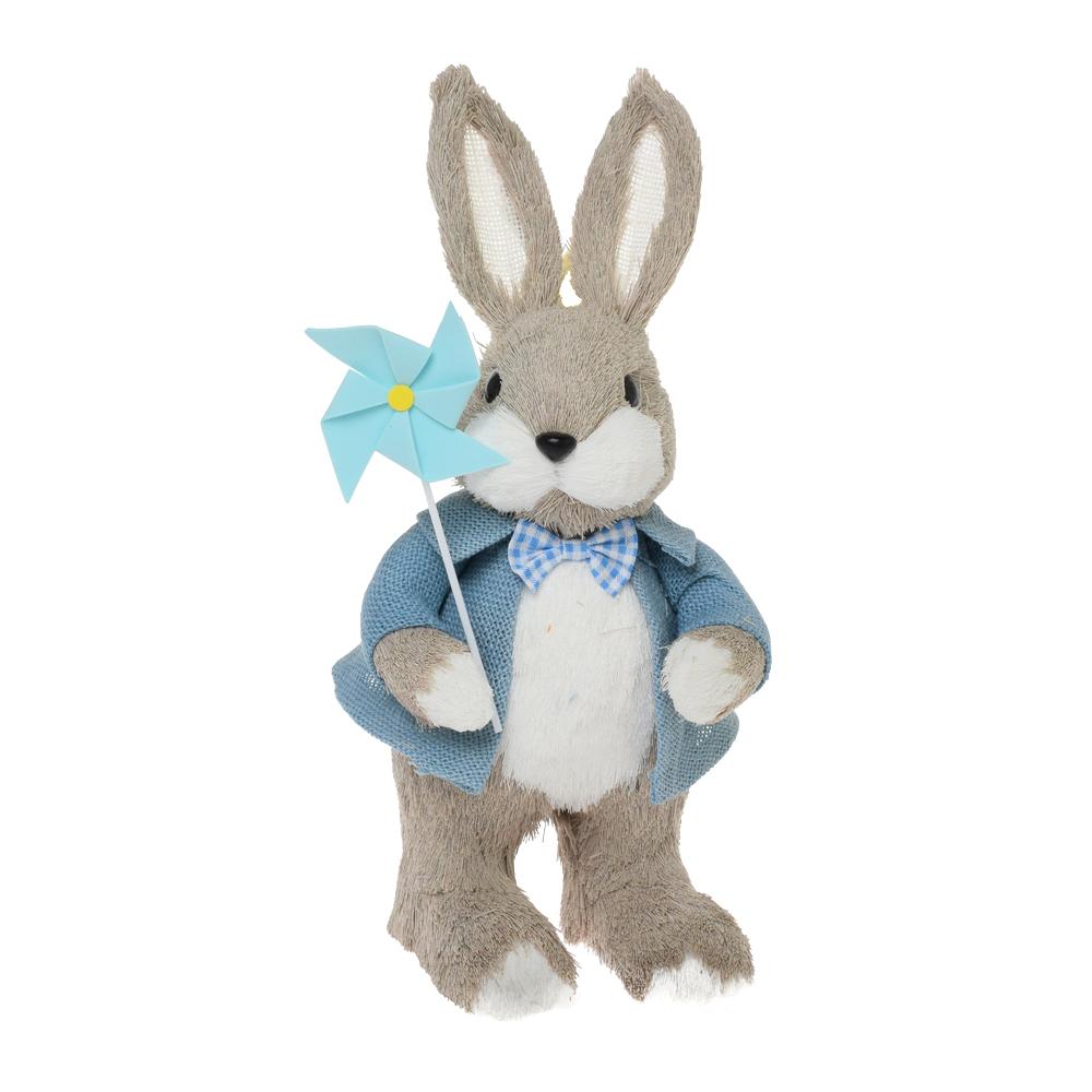 ZAJAC S VRTUĽKOU SLAMA 15x16x38CM MODRÝ