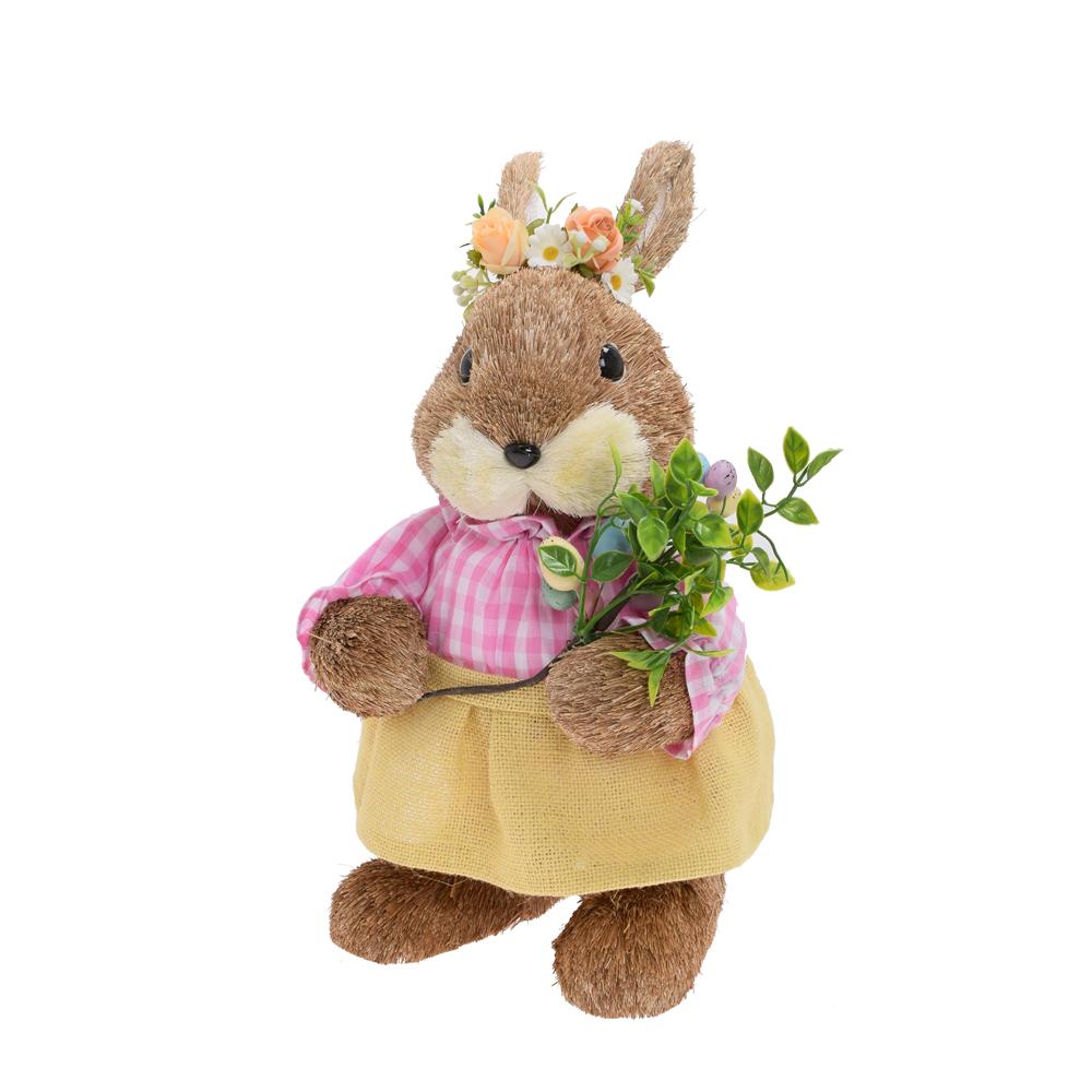 ZAJAČICA S VAJÍČKAMI HNE/RUŽ SLAMA 23*22*44CM