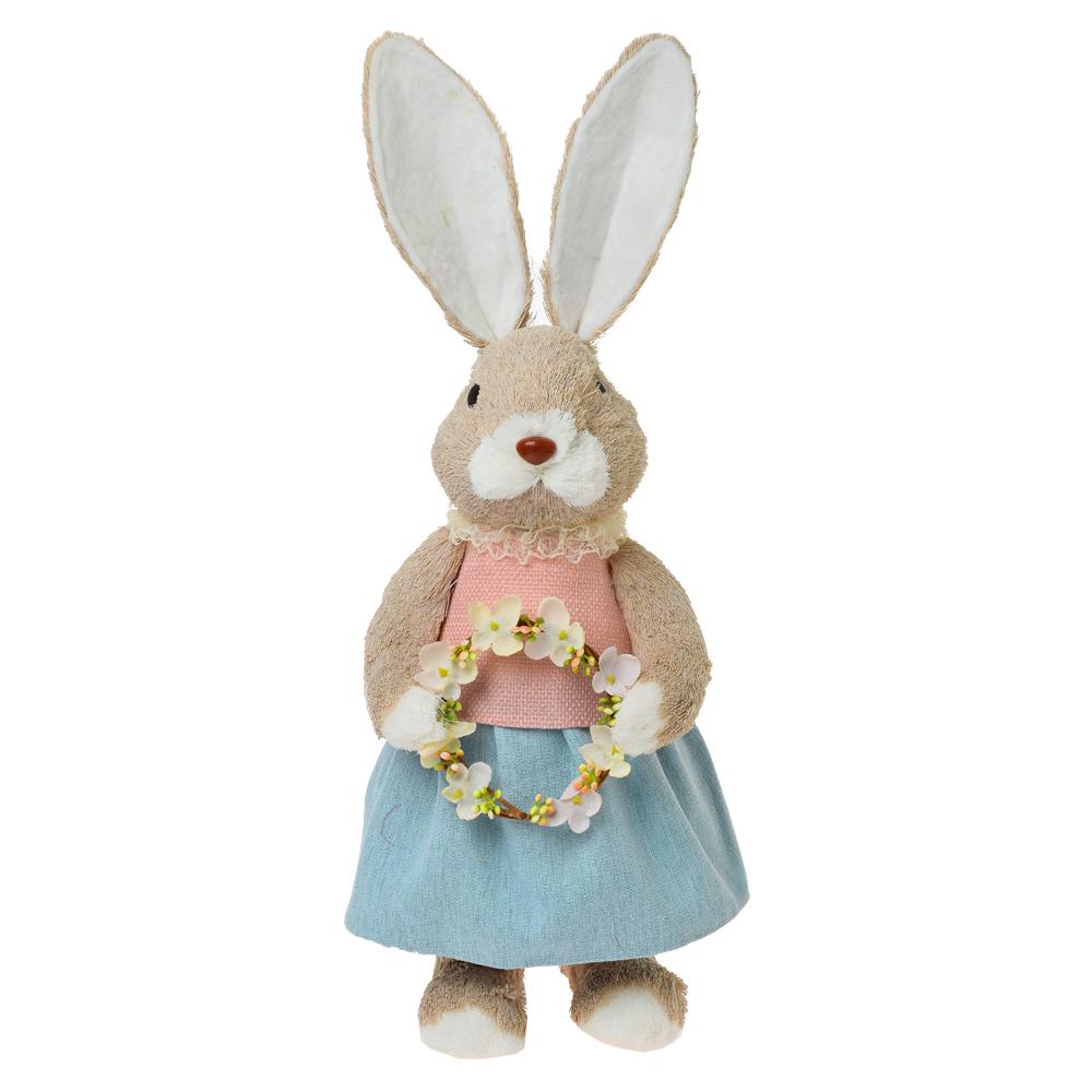 ZAJAČICA S VENČEKOM SLAMA 18x19x48CM RUŽOVOMODRÁ