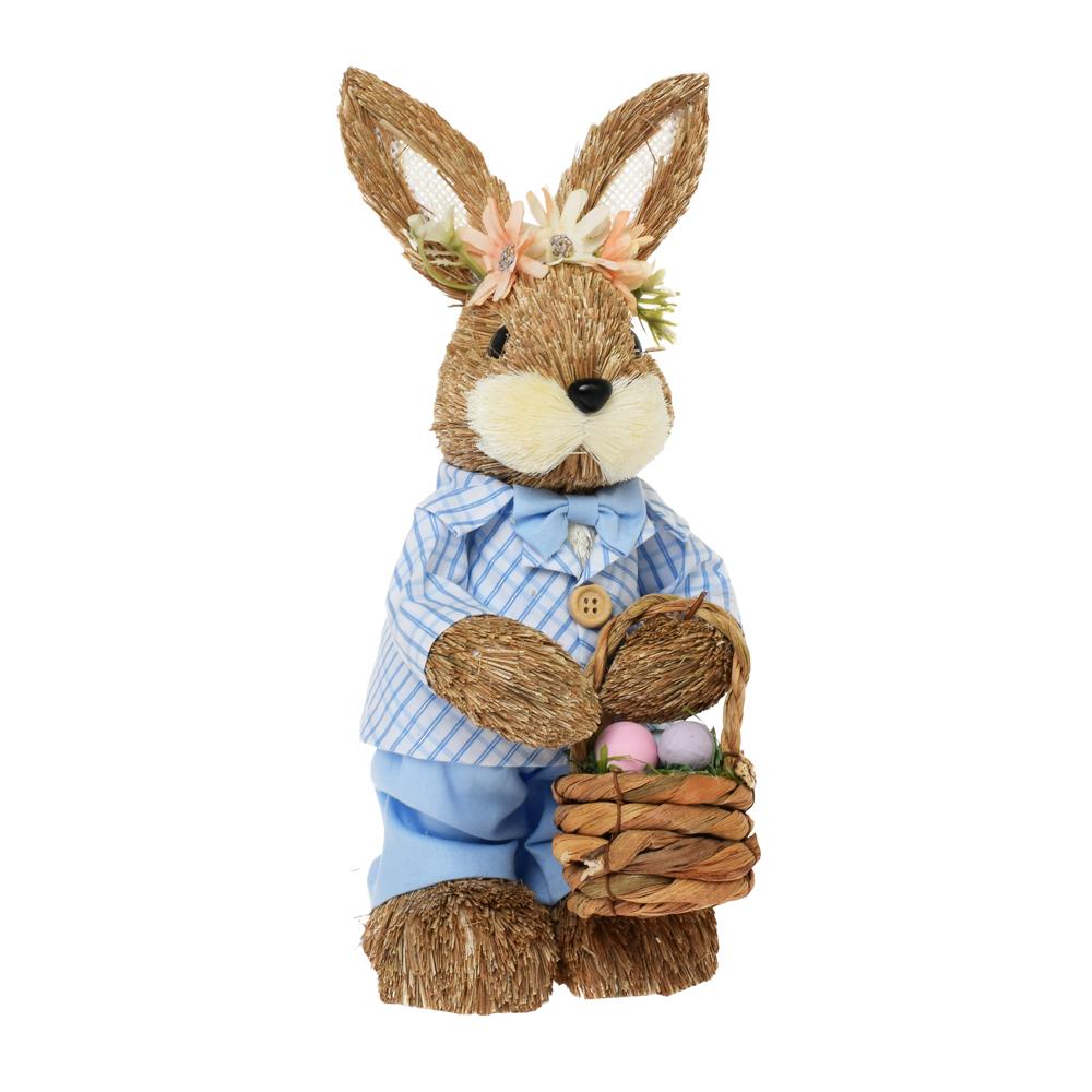 ZAJAC S KOŠÍKOM SLAMA 11x14x29CM MODRÝ