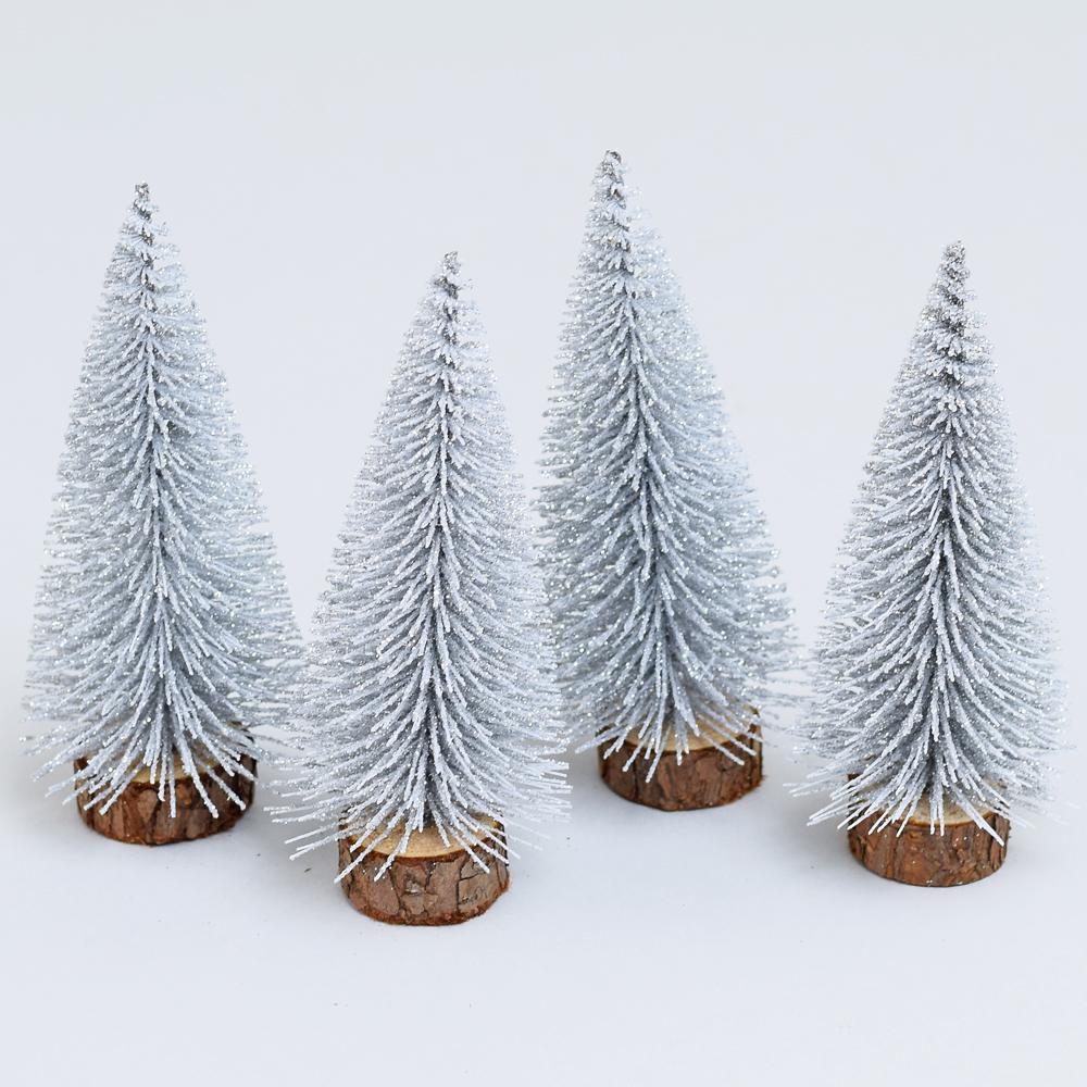 Strieborné vianočné stromčeky na pni, sada 4 kusy.