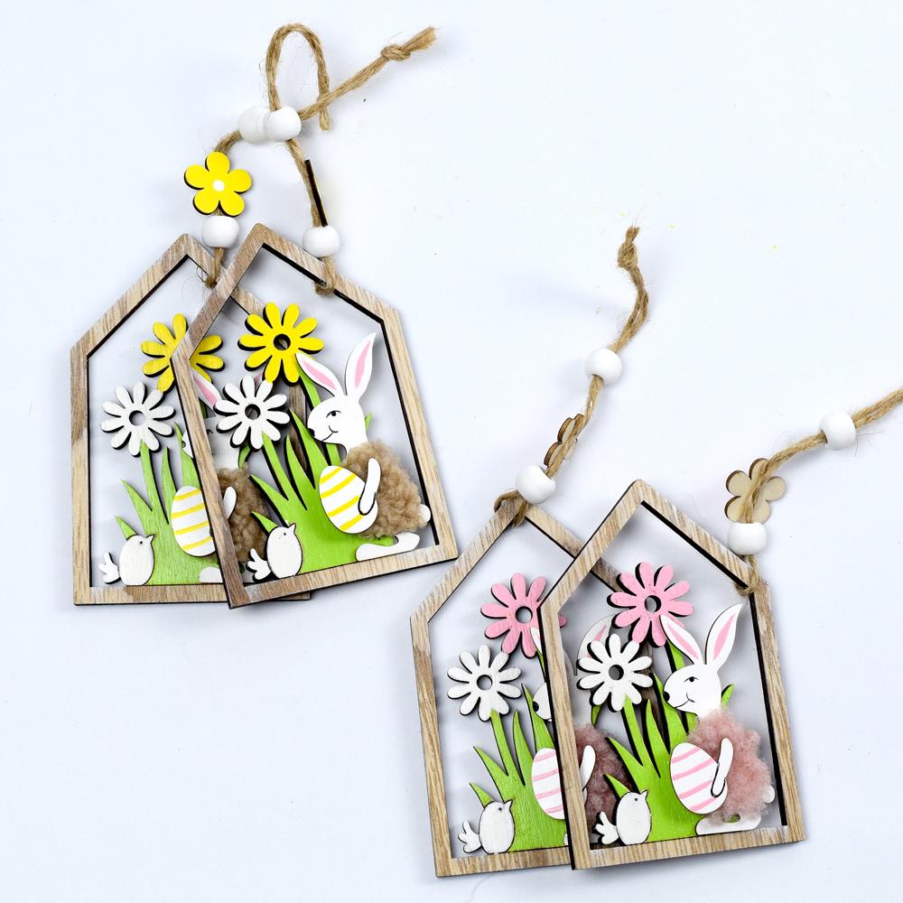 DOMČEK ZÁVES SO ZAJACOM DREVO S/2 MIX F 6.5x10.5CM
